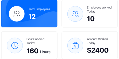 Monitor work hours, performance trends, and payroll insights in one dashboard.